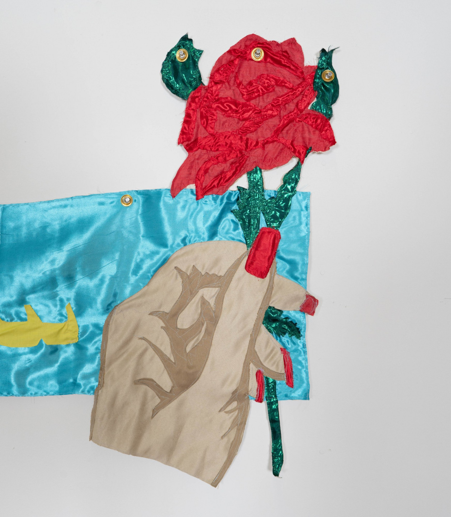Sahar, Nail Salon #2 (detail). 2020 – cotton, muslin, suede, and silk – 31" x 92"