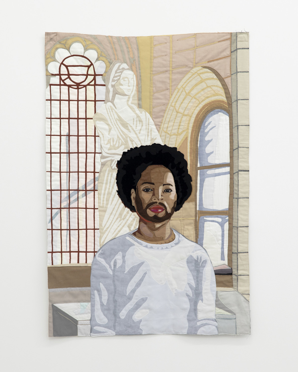 Portrait of Kern Samuel at Yale Art Gallery. 2024 – Muslin, cotton, chiffon, silk, linen, and velvet – 52''H x 34.5''W