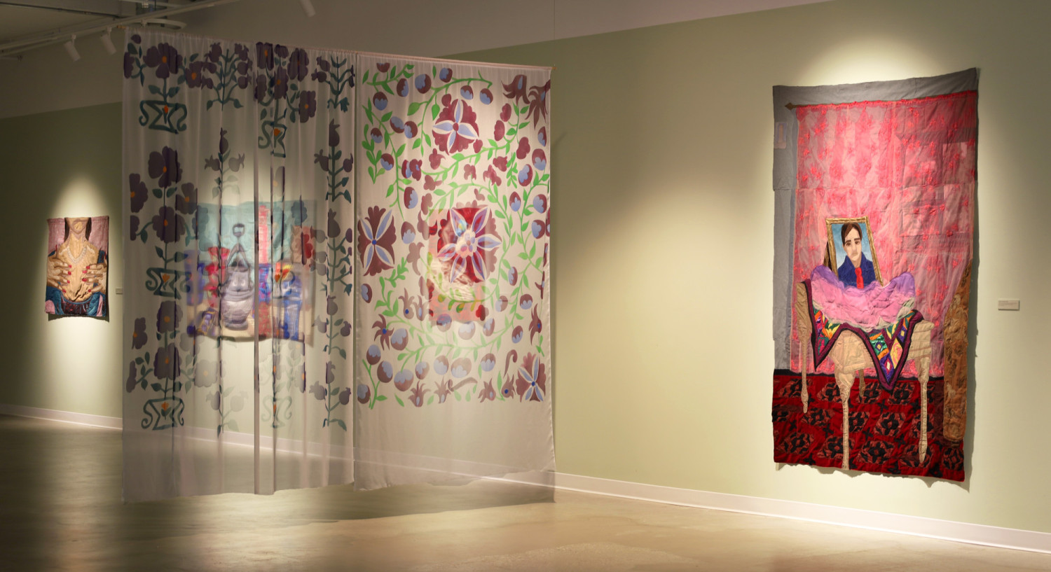 Installation view of Hangama Amiri: Henna Night II / Shabe Kheena II. Vancouver, 2025. © Parastoo Shahrestani. Courtesy of VIVA Alliance and Medias Res Gallery.