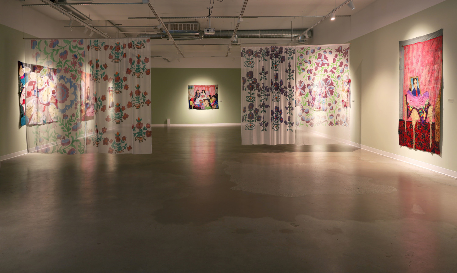 Installation view of Hangama Amiri: Henna Night II / Shabe Kheena II. Vancouver, 2025. © Parastoo Shahrestani. Courtesy of VIVA Alliance and Medias Res Gallery.