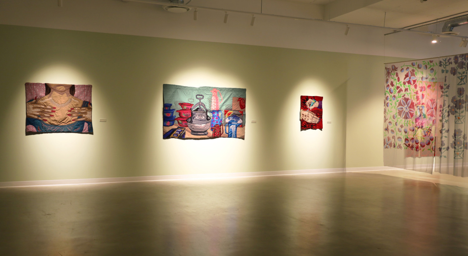 Installation view of Hangama Amiri: Henna Night II / Shabe Kheena II. Vancouver, 2025. © Parastoo Shahrestani. Courtesy of VIVA Alliance and Medias Res Gallery.