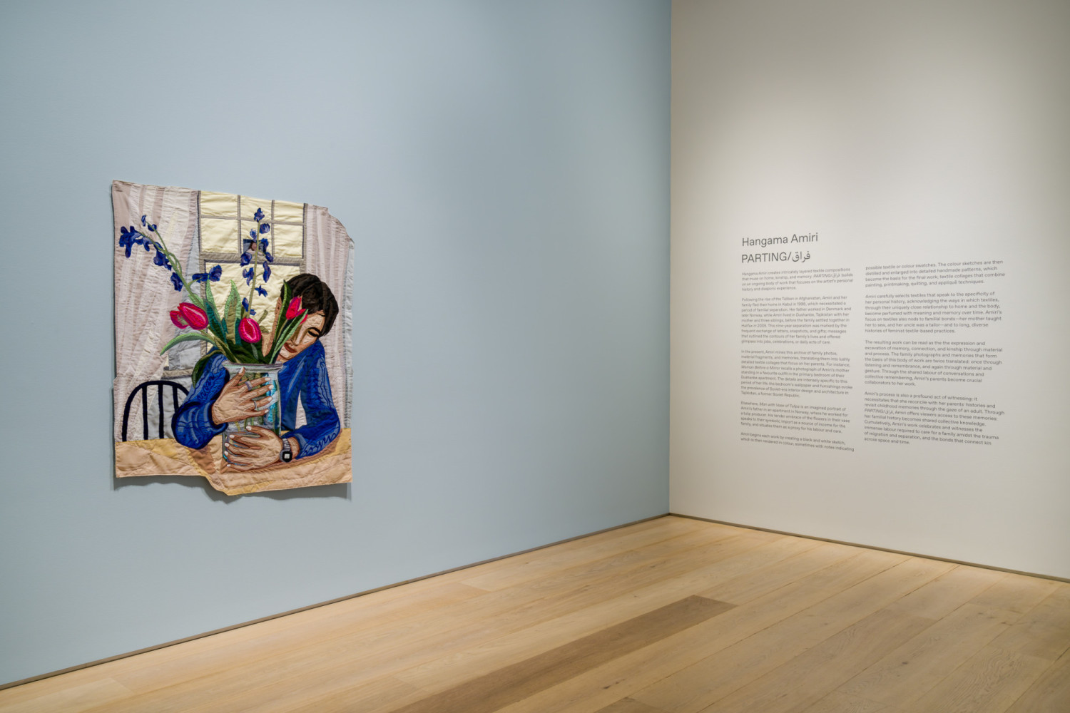 Installation view of Hangama Amiri: PARTING/فراق. Esker Foundation, Calgary, 2025. Photo by Blaine Campbell.
