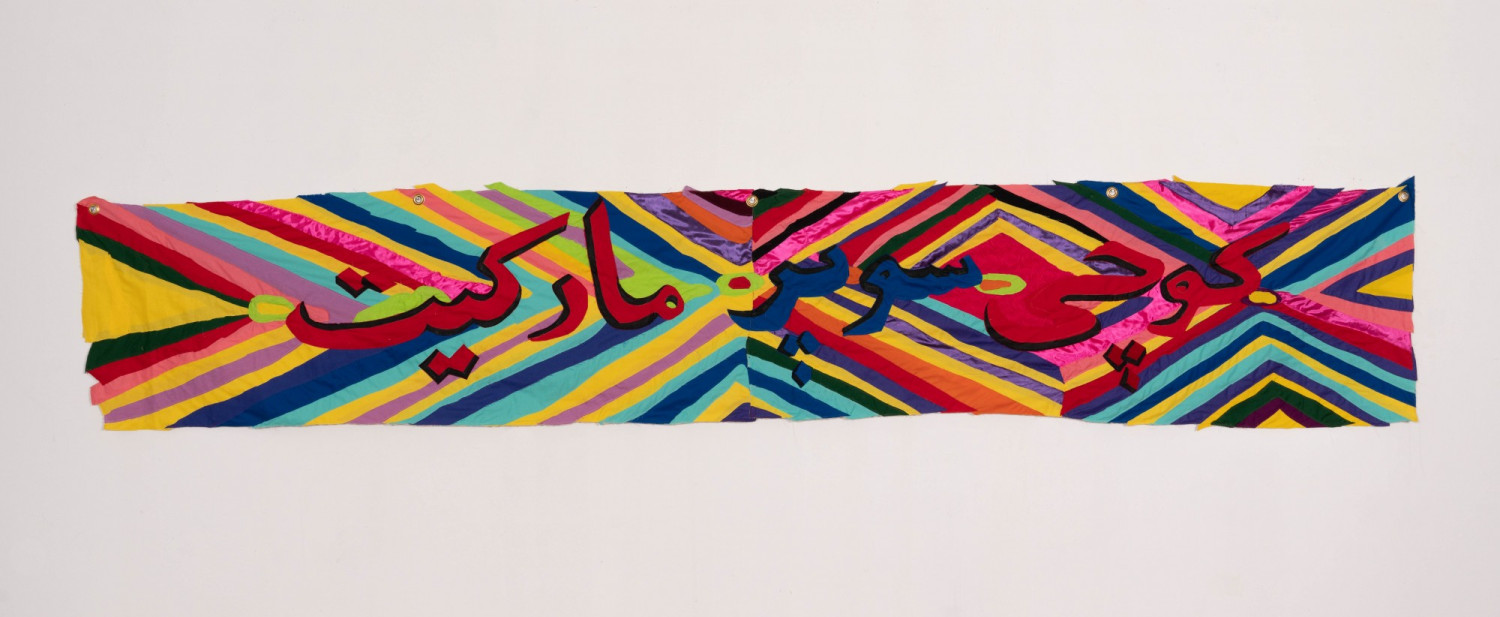 Kouchi Super Market. 2021 – Muslin, cotton, polyester, silk, and acrylic paint – 22” x 120”