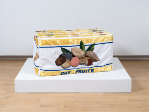Afghan Dry Fruit. 2022 – Muslin, cotton, inkjet silk print, and polyester – 42" H x 42" W x 48" L