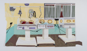 New Born, Baby Girls. 2022 – Muslin, cotton, polyester, chiffon, suede, leather, faux leather, color pencil on fabric, inkjet print, clear vinyl, acrylic paint, and found fabric – 71.5" x 133"