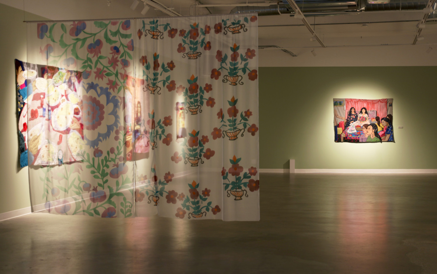Installation view of Hangama Amiri: Henna Night II / Shabe Kheena II. Vancouver, 2025. © Parastoo Shahrestani. Courtesy of VIVA Alliance and Medias Res Gallery.