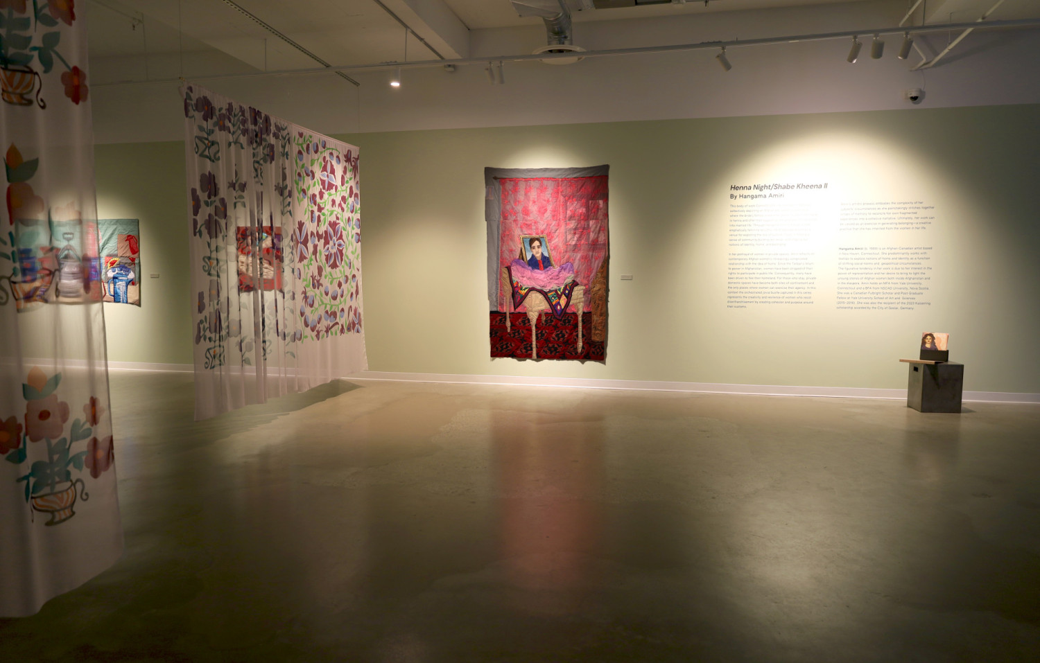 Installation view of Hangama Amiri: Henna Night II / Shabe Kheena II. Vancouver, 2025. © Parastoo Shahrestani. Courtesy of VIVA Alliance and Medias Res Gallery.