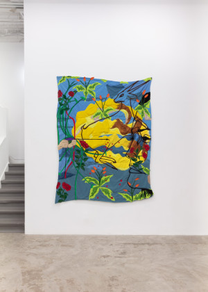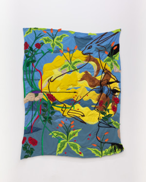 Wounded Deer. 2021 – Chiffon, muslin, cotton, polyester, silk, suede, net mesh, and found fabric – 98" X 75"
