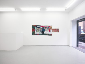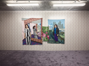 "For her first solo exhibition at Union Pacific gallery, Afghan-Canadian artist Hangama Amiri has employed an architectural splitscreen to take us inside the story of a separation. Combining the visual vocabulary of history painting with the skills and materials of a couturier Amiri explores, through fabric appliqué, the photographs her parents exchanged during their nine year separation following the family’s exodus from Afghanistan: her father’s dispatches from Norway and Denmark on the top floor of the gallery, her mother’s from Tajikistan on the lower level.