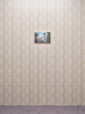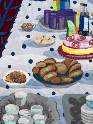 While deeply personal, Amiri’s kaleidoscopic tableaus are also fascinating period pieces speckled with details that capture the extraordinary culture that emerged at the confluence of Afghan and Tajik communities in the late 1990s. With a panoply of fabrics and an unexpected, disquietly seductive, immersive environment, she has memorialized how families like hers celebrated, what entertained them, what their homes looked like, and perhaps most significantly, how they wanted to remember themselves. In doing so, Amiri has added depth, nuance and complications to our understanding of contemporary Afghan diaspora, commemorated the resilience and love of an Afghan marriage, and composed a bittersweet ballad of hope for a new generation of separated lovers." Written by Sarah Burney