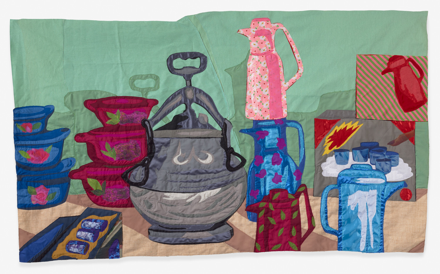 Still-Life with Dishes. 2023 – Muslin, cotton, polyester, chiffon, silk, and inkjet print on silk-chiffon – 44”H x 75”W
