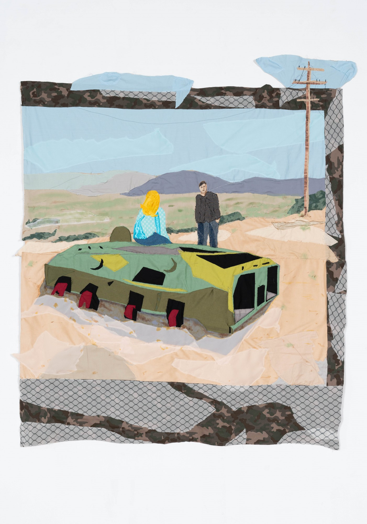 Portrait of Two Lovers. 2021 – Chiffon, muslin, cotton, suede, polyester, silk, printed textile, inkjet print on silk, marker, and found fabric – 61'' x 51.5''