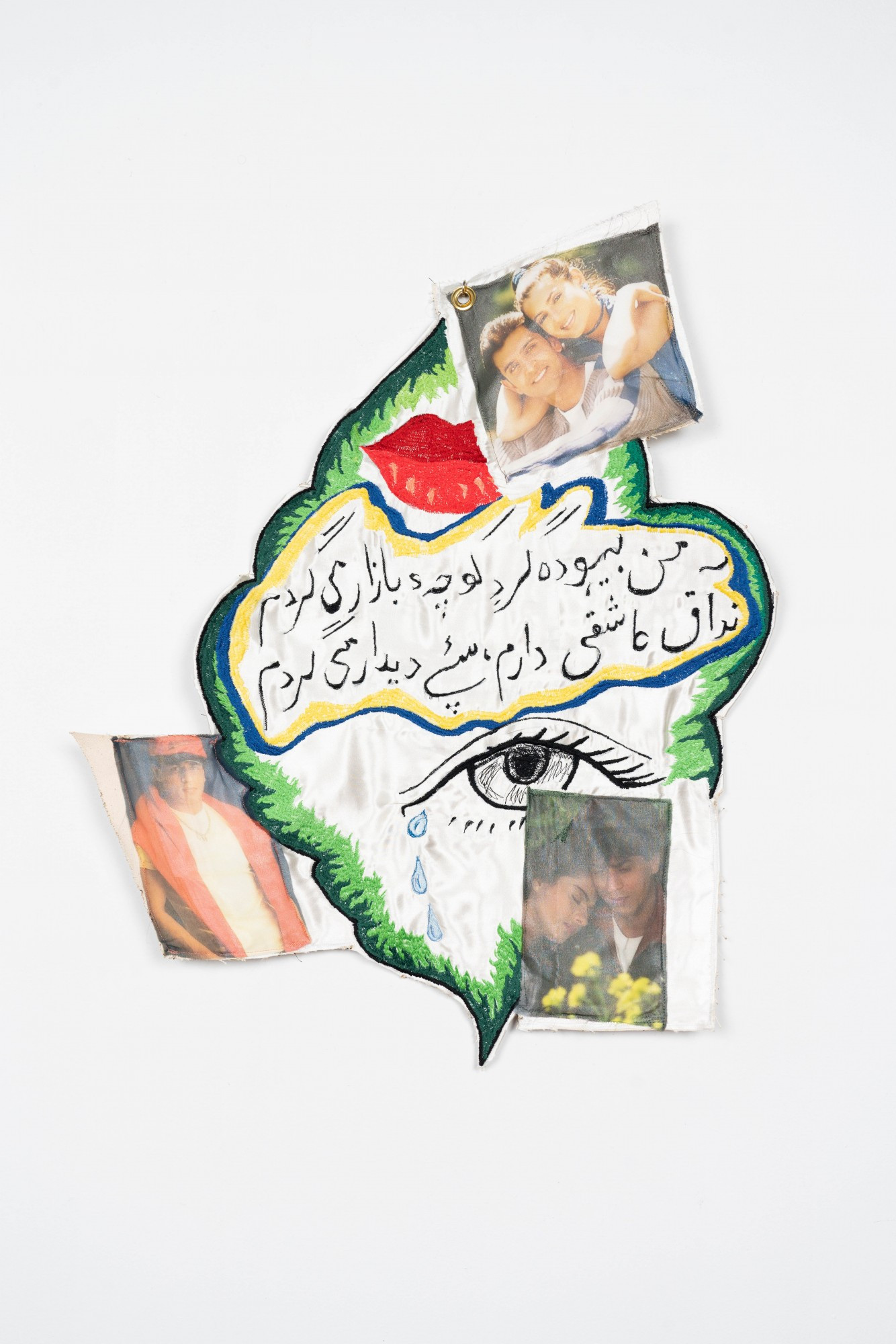When I am With You. 2021 – Inkjet print on silk, canvas, and embroidery on satin – 28'' x 22.5''