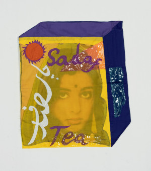 Sadaf Tea, 2021 – Chiffon, muslin, cotton, polyester, inkjet print on chiffon, and clear vinyl – 26” x 23”