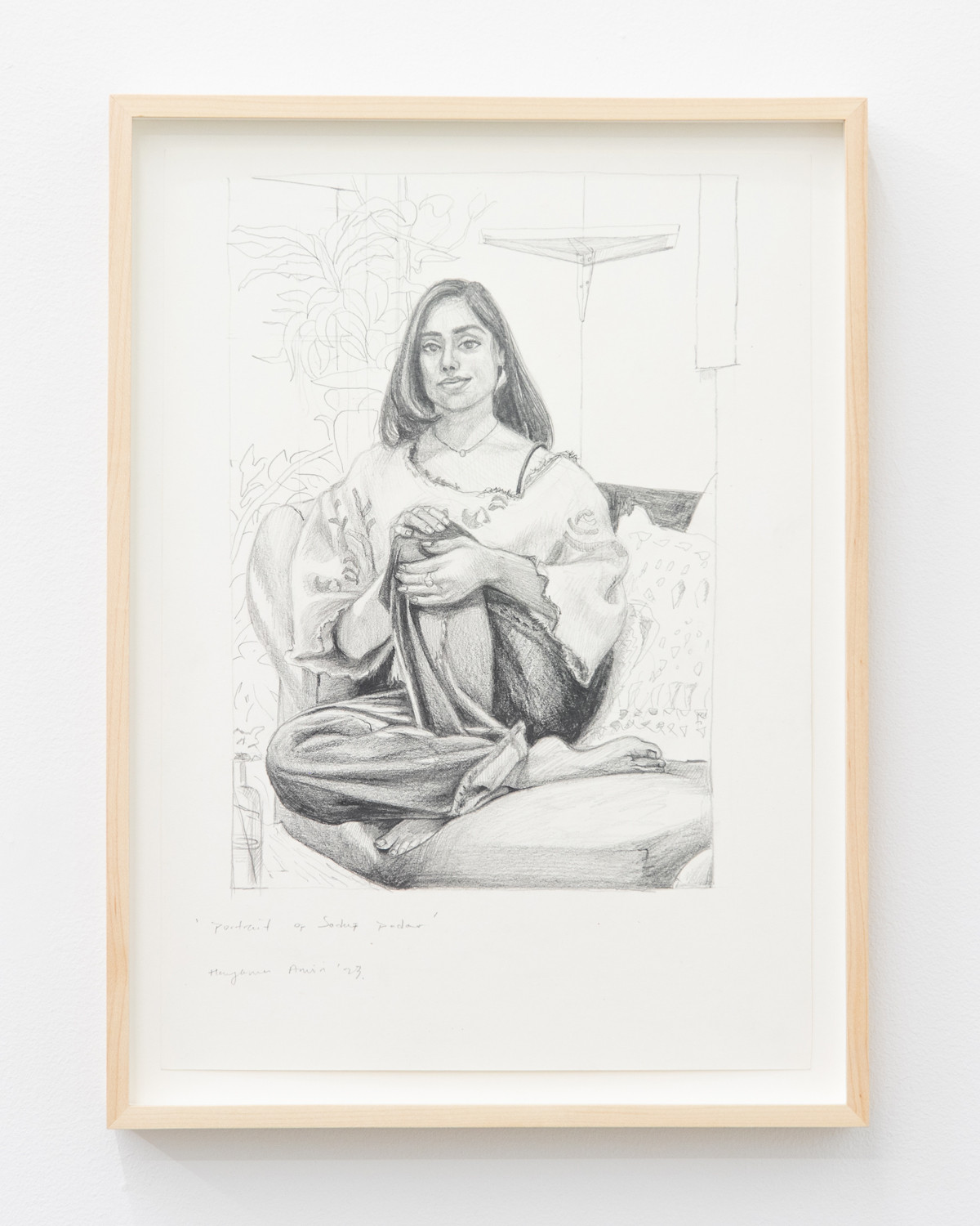 Portrait of Sadaf Paddar at Her Apartment in Brooklyn, NY. 2023 – Pencil on Paper – 15’’H x 10.7’’W